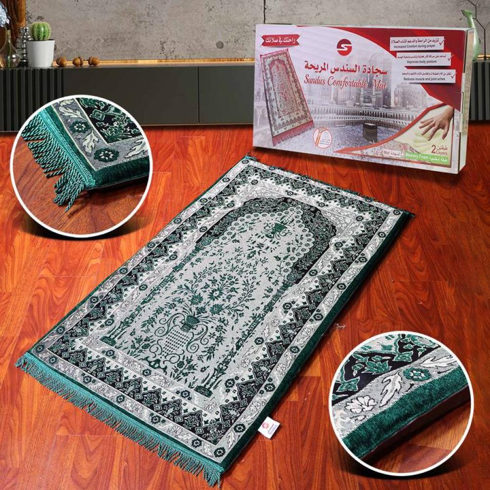 • سجادة صلاة مكونة من طبقتين بحشوة رغوية عالية الجودة لتوفير وزيادة الراحة أثناء الصلاة.