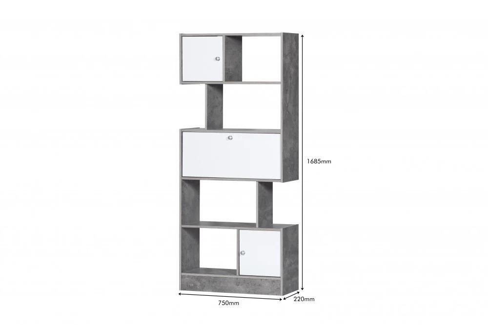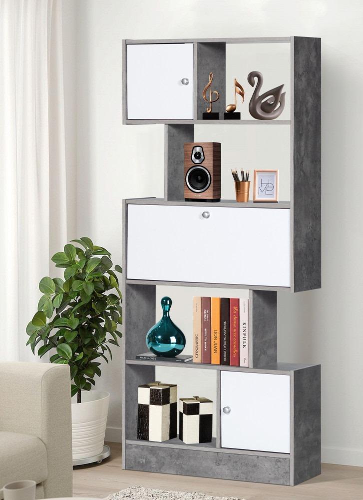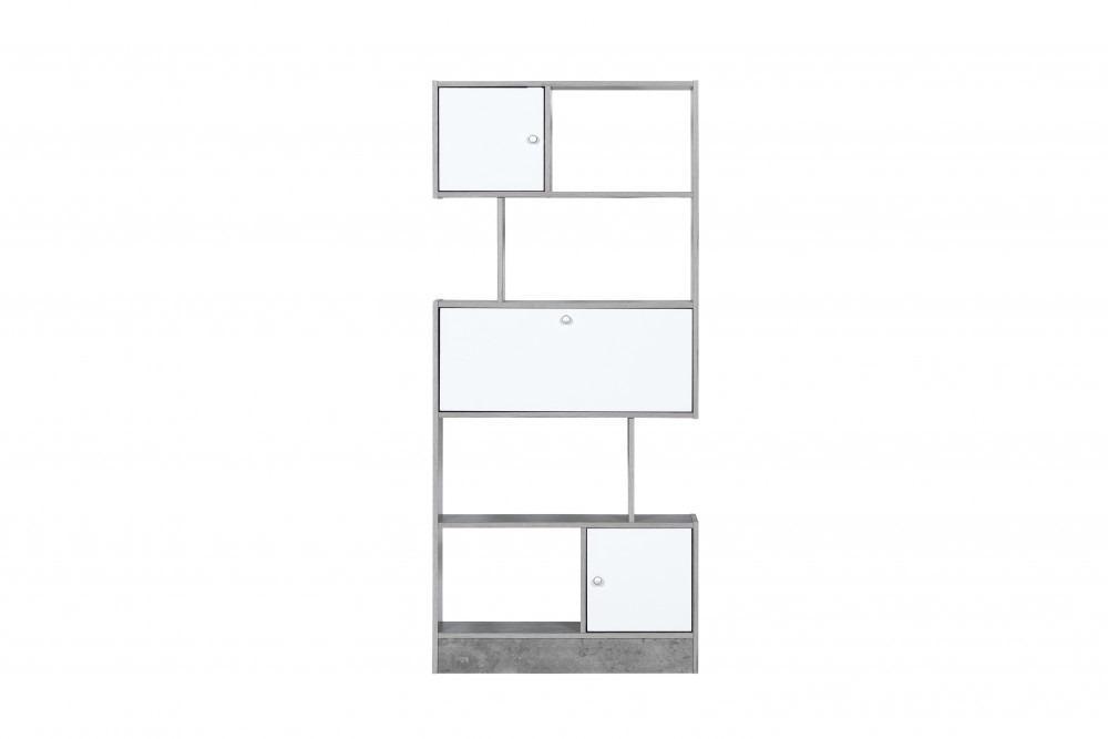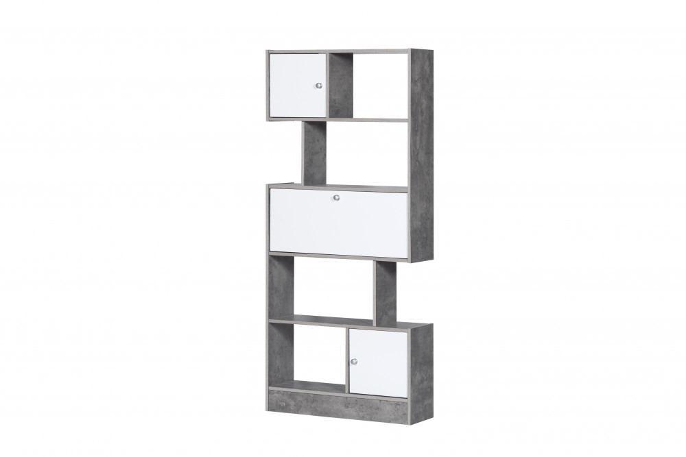وحدة رفوف 5 أدوار من الخشب الماليزي مع أدراج لون رمادي وأبيض :