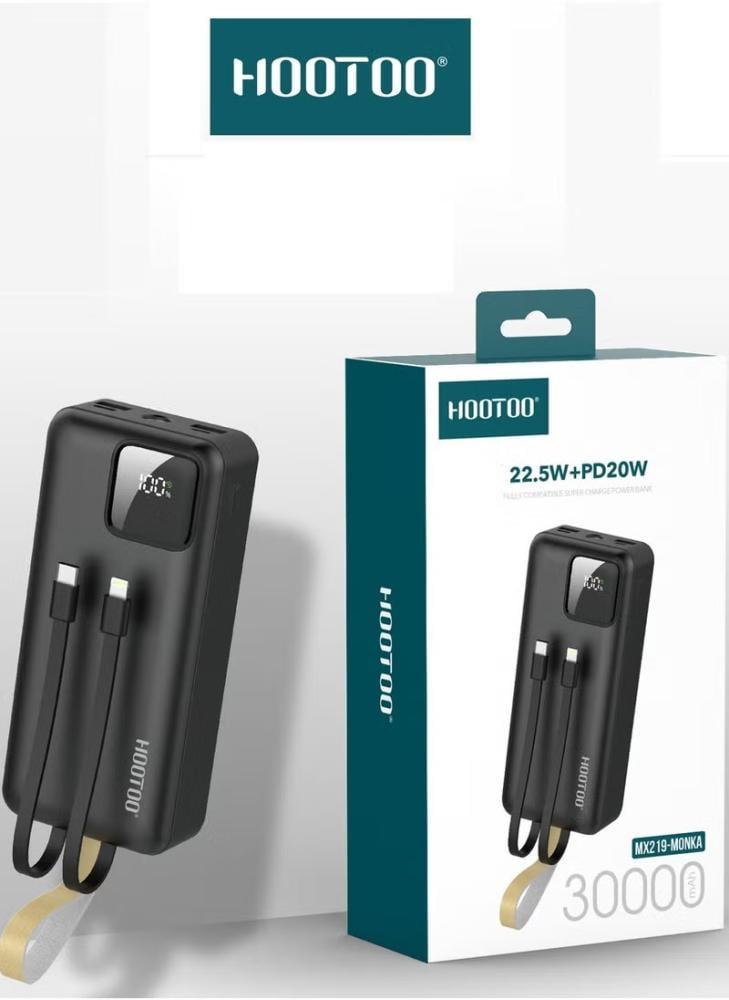 باور بانك 30000 مع ميزات رائعه شاشة عرض وضوء للطوارئ مع قدره حمل الباور بنك بحبل ثابت في اعلاه الباور بنك