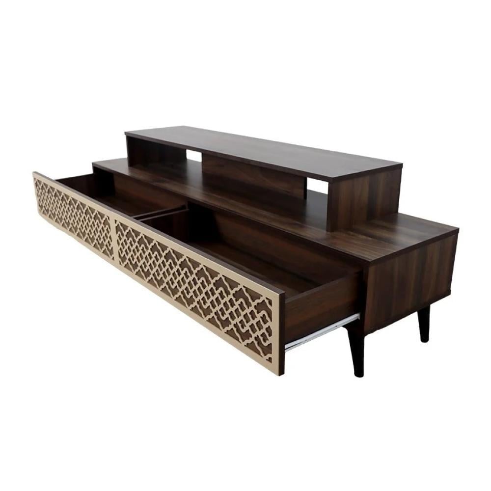طاولة تلفزيون خشب ماليزي منقوش لون بني :