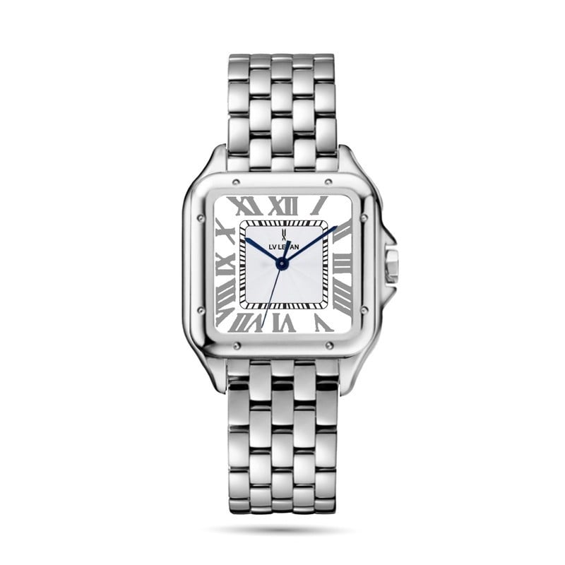 ساعة رجاليه من ماركه لف ليفان، ساعة بسوار من الاستيل ،ساعة بتصميم مستوحى من كارتير كلاسيكي ، تتميز الساعه بالميناء الكلاسيك ، ساعه بلمسات من الفخامة و الجاذبية ، لحضور ملفت في مناسباتك المهمه. المميزات : الساعه مصنوعة من المعدن المقاوم للصدأ مقاوم للماء, مقاوم للتآكل, مقاوم للخدش تصميم رسمي تصميم كارتير