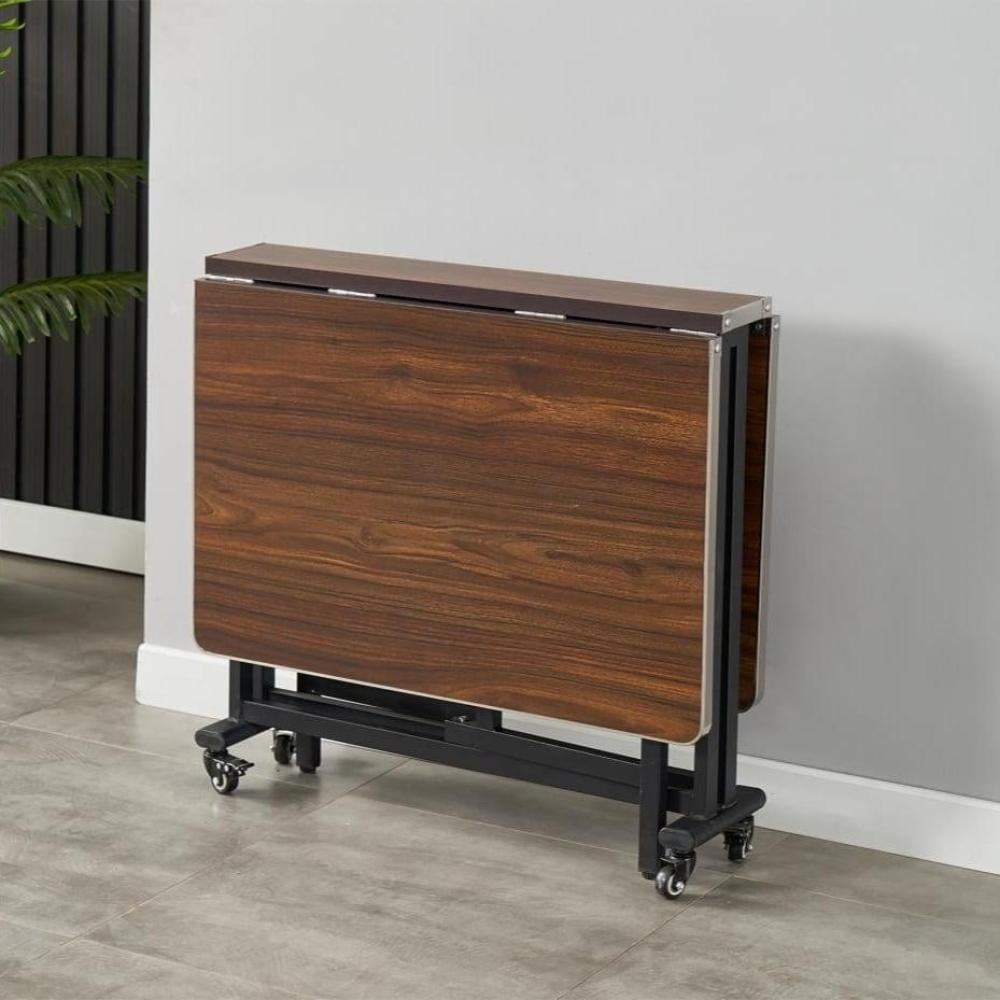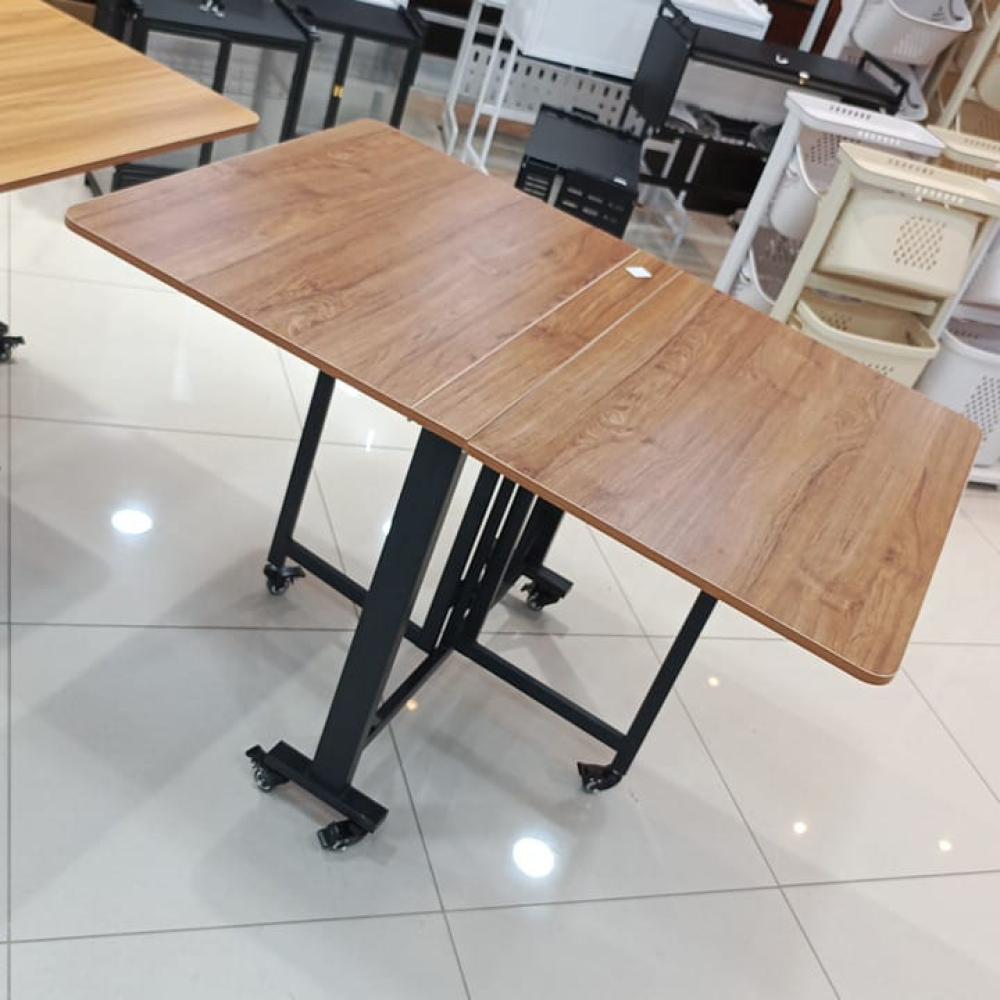 • طاولة طعام قابلة للطي مزودة بعجلات تسهل نقل الطاولة من مكان لآخر، غالبًا ما تكون العجلات مزودة بقفل لتثبيت الطاولة في مكانها بعد النقل.