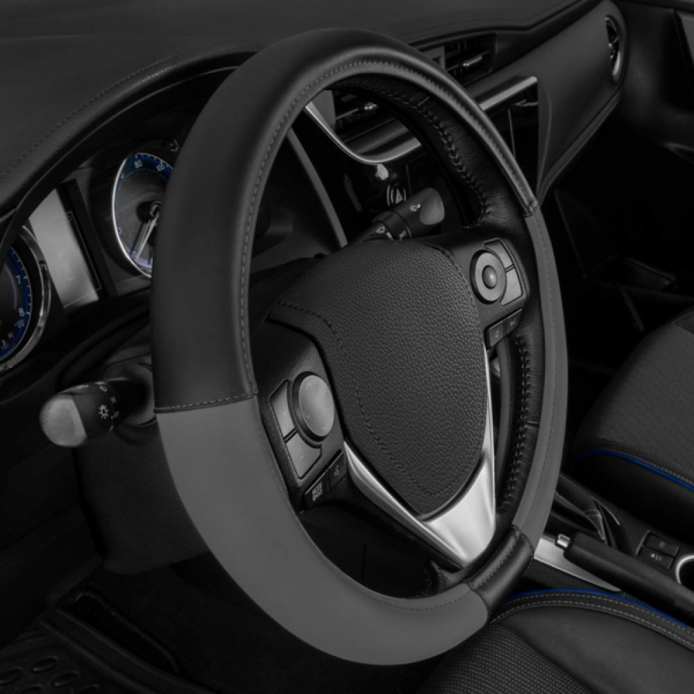 انطلق في الطريق بأناقة مع غطاء عجلة القيادة من كات بتصميم ثنائي اللون باللون الرمادي الداكن والأسود. صُمم بخياطة مزدوجة، مما يضمن قوة ومتانة لا مثيل لهما. يقدم التصميم المريح قبضة ناعمة ومريحة، ويعزل عجلتك، حمايتك من درجات الحرارة القصوى لرحلة أكثر نعومة ومتعة.
