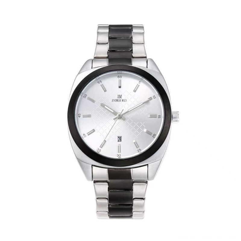 ساعة رجالية فاخرة بصميم كلاسيك من ماركة ( ANEMARMAN )بسير من الستانلس ستيل بميناء بالون الفضي بأطار اسود انيق