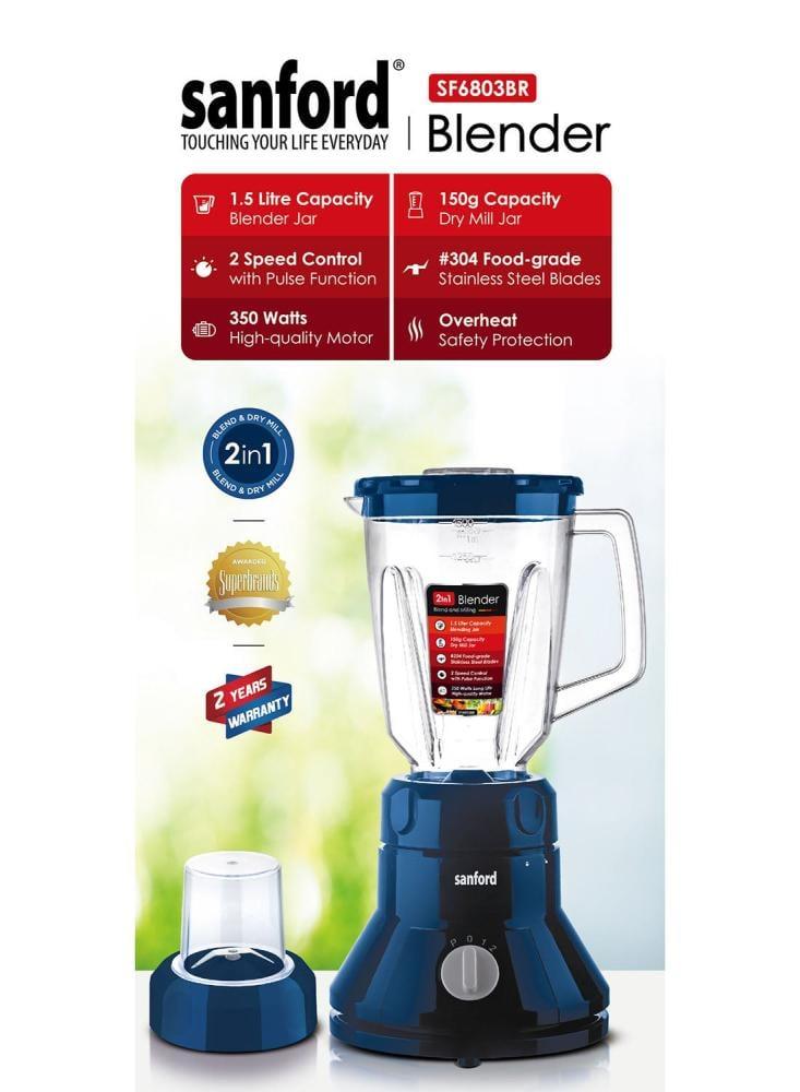 خلاط سانفورد 2 في 1 بقوة 350 وات وسعة 1.5 لتر وسعة 1.5 لتر وقوة 350 وات SF6803BR BS متعدد الألوان رقم الموديل : SF6803BR BS
